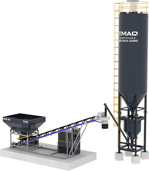 A Usina de Concreto Rasga Saco EMAQ é uma solução completa e altamente eficiente para a produção contínua de concreto, com capacidade de até 30 m³/h. Seu sistema moderno conta com um silo de agregados de alta capacidade, esteira lançadora otimizada, bombeamento de água automatizado e comportas pneumáticas, garantindo precisão na dosagem dos materiais e qualidade na mistura.