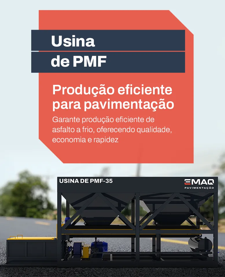 A Usina de PMF EMAQ garante produção eficiente de misturas asfálticas a frio, ideais para pavimentação e manutenção viária. Com dosagem automatizada, assegura mistura homogênea e pronta para aplicação, reduzindo custos e otimizando a operação.