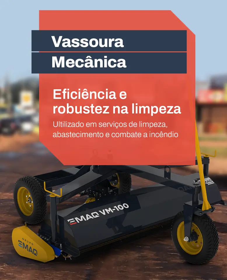 A Vassoura Mecânica EMAQ VM-100 é a solução ideal para varrição rápida e eficiente em diferentes superfícies. Projetada para atender setores como pavimentação, construção civil, agroindústria e manutenção urbana, sua estrutura robusta em aço de alta resistência garante durabilidade, estabilidade e fácil operação.
